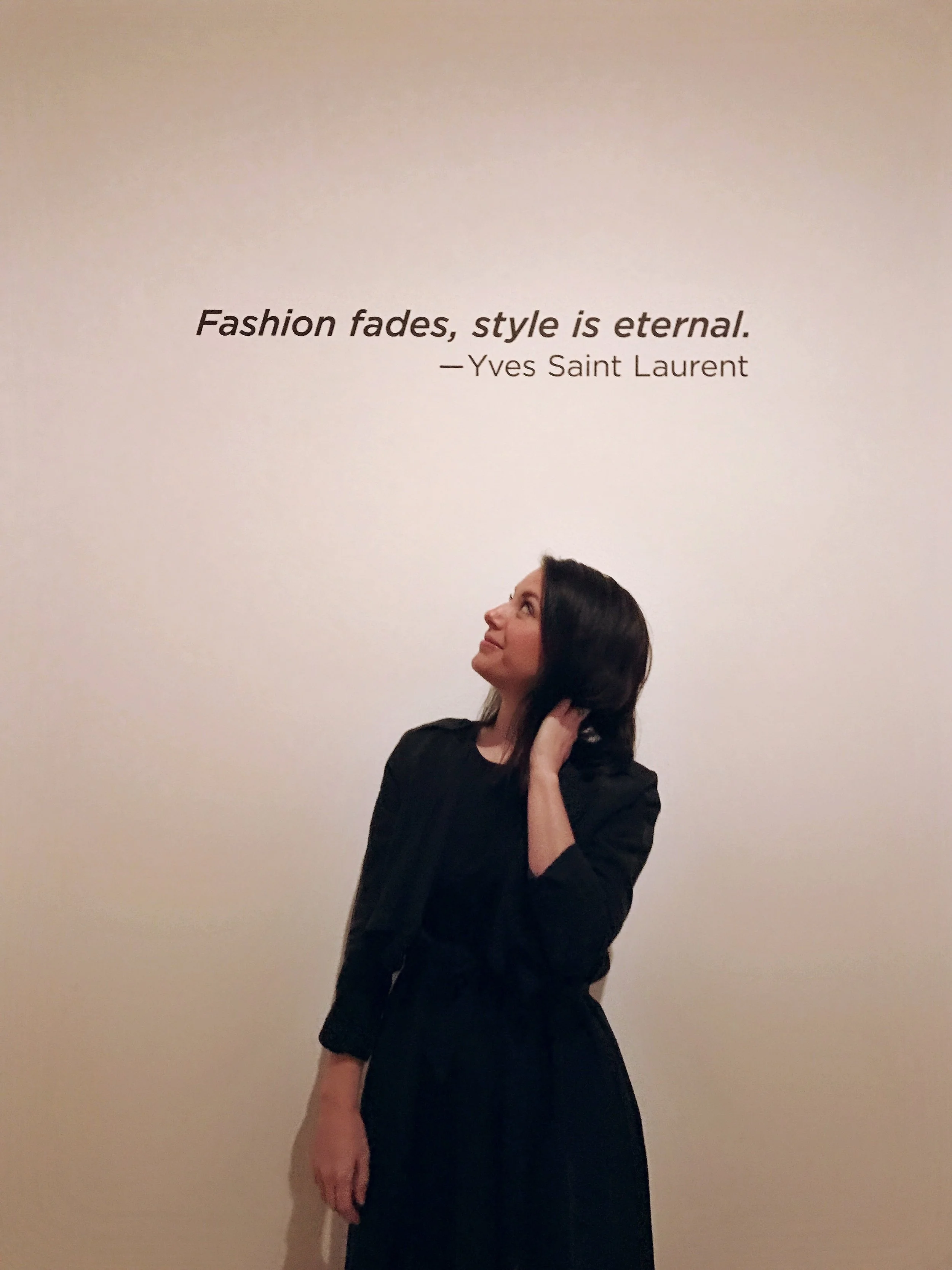 Yves Saint Laurent was a revolutionary for his time and is a legend in the fashion world! His designs are still so relevant today and the true definition of timeless. He introduced menswear inspired garments flawlessly and effortlessly into the lives of women. It is so important to me to go to events like this and learn more about the history of fashion. Not to mention it fuels my inspiration for my own personal style!